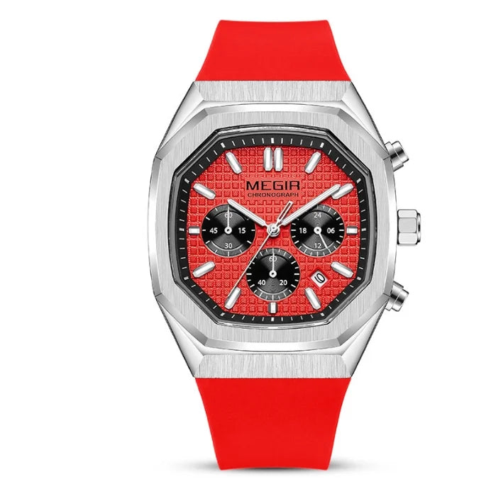 O Relógio Masculino Square Chrono Premium é a escolha ideal para homens que buscam um relógio esportivo quadrado moderno , com cronógrafo , calendário e resistência à água , sem abrir mão de um visual forte e atual.