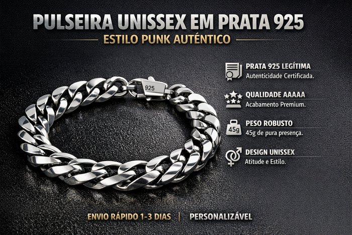 Pulseira Unissex em Prata 925 – Estilo Punk Autêntico