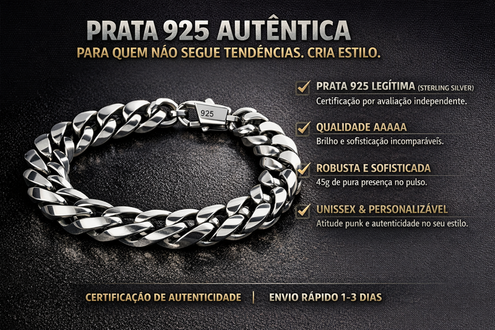 Esta pulseira em Prata 925 legítima foi criada para quem não segue padrões — cria identidade.