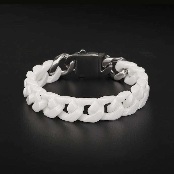 A pulseira ideal para quem busca sofisticação, modernidade e atitude em um único acessório. Com design geométrico elegante , ela combina perfeitamente o brilho do aço inoxidável com a leveza e o acabamento premium da cerâmica , criando um visual marcante e versátil.